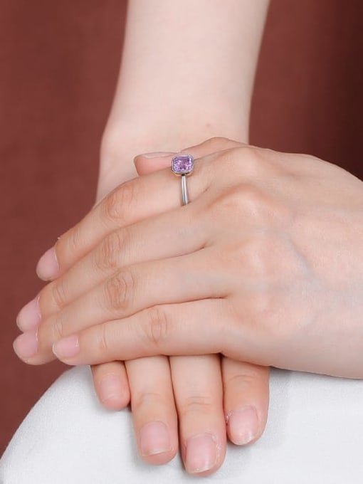 Sterling Silver Amethyst Geometric Minimalist Band Ring